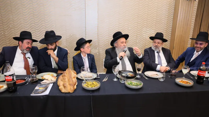בבני ברק התקיימה שמחת הבר מצוה לנינו של חבר מועצת חכמי התורה וגאב"ד יורה דעה הגר"ש מחפוד, נכד לחתנו הגר"מ מוגרבי ר"י כנסת ישראל באשדוד. רבנים ואישי ציבור עלו לברך | צילום: יעקב כהן