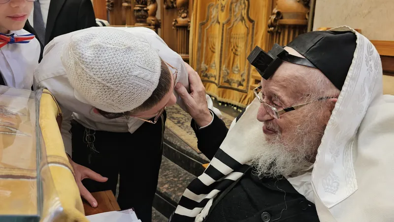הראש"ל הגר"ד יוסף עצר את שמחת הפורים וערך 'מי שברך' לאדמו"ר מויז'ניץ רבי ישראל בן לאה אסתר | צפו בתיעוד