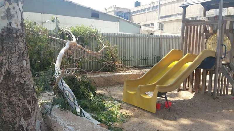 פתיחת שנת הלימודים • ענף עץ נפל על ילד כבן 5
