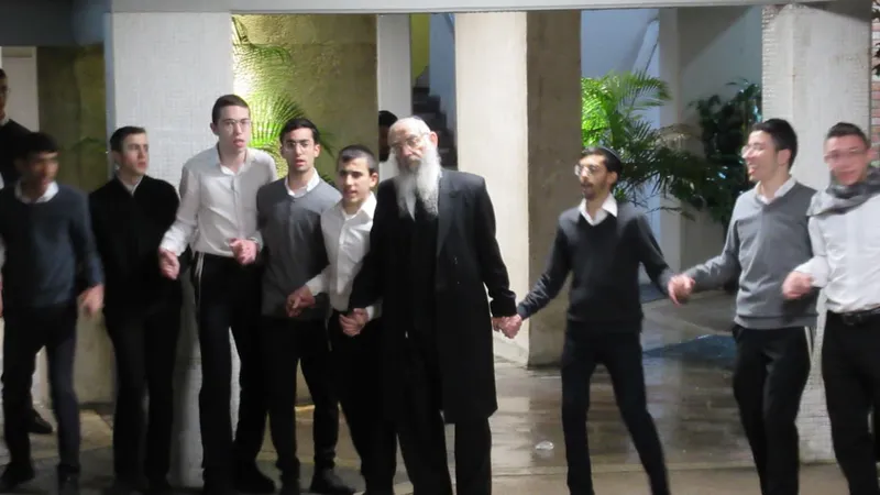 חנוכה ב'בית שמעיה'ראש הישיבה הדליק והבחורים פצחו בריקודים