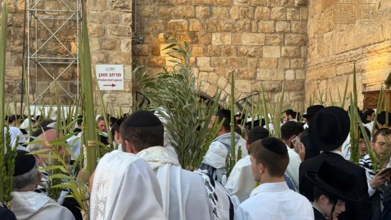 התרגשות רבה בכותל: השיא היה בתפילת הנץ אשר התקיימה במעמד אלפים רבים עם מנהג חיבוט הערבות סמוך לשריד בית המקדש, כאשר קהל האלפים משלבים בתפילות פרקי הלל והודיה לרגל שחרורם של החטופים