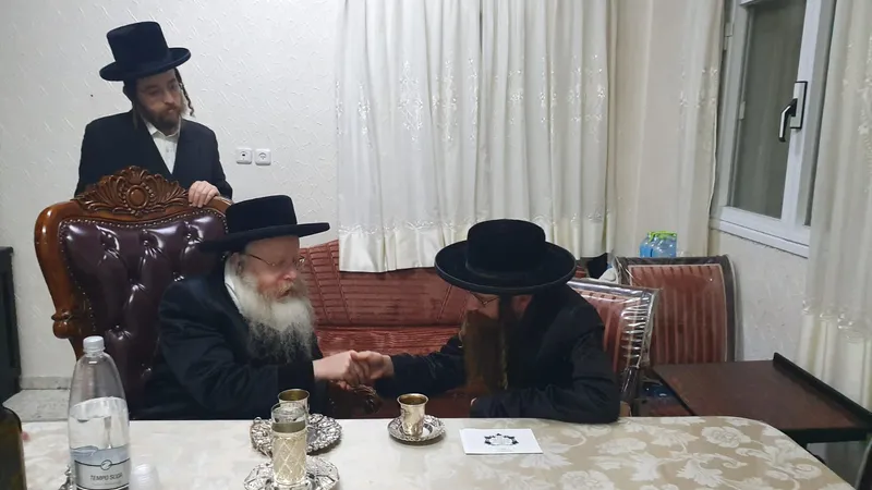 תיעוד מיוחד: האדמו"ר מתולדות אהרן נפגש עם הצדיק הרב דב קוק בשמחה בטבריה והשניים ערכו 'לחיים' שנמשך דקות ארוכות
